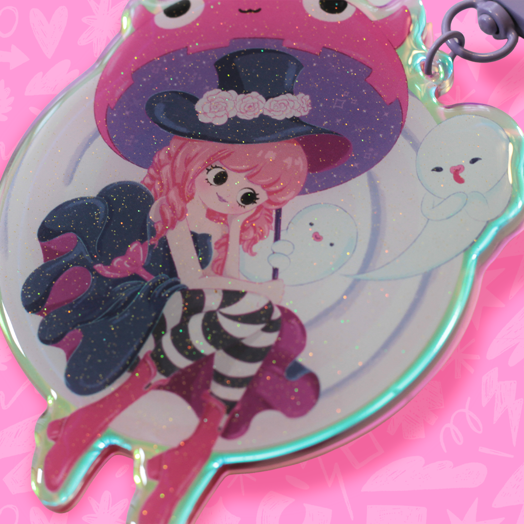 🔹 Material: acrílico doble cara con acabado brillante y detalles con glitter